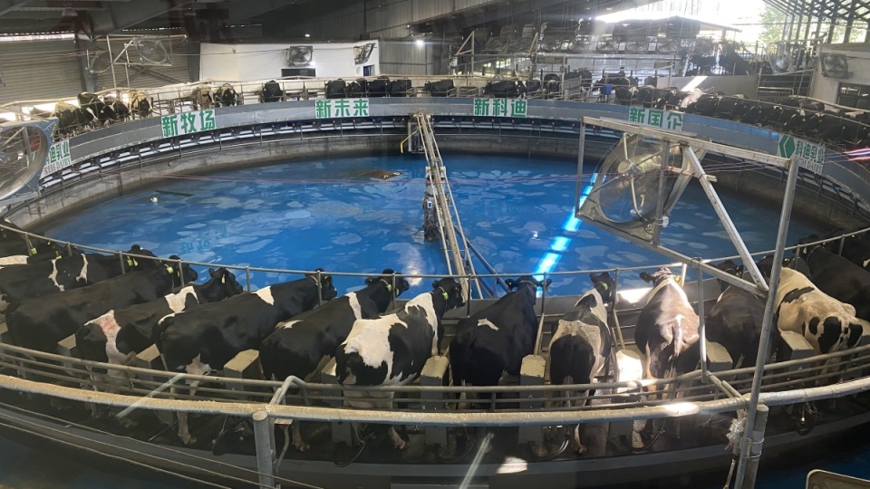 “这个转盘有80个挤奶位,每个位置正好站下一头牛,牛走上挤奶位后,挤奶设备会自动与奶牛对接,自动挤奶就正式开始了!”8月29日,在商丘市虞城县华体会(中国)智慧牧场,工作人员介绍着挤奶流程。